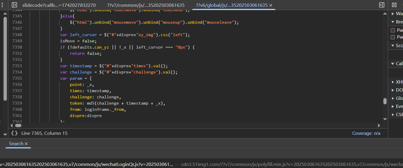 全局搜索challenge,发现challenge的值是来自https://authcode.51.com/authcode/slidecode的响应的,`times`也一样