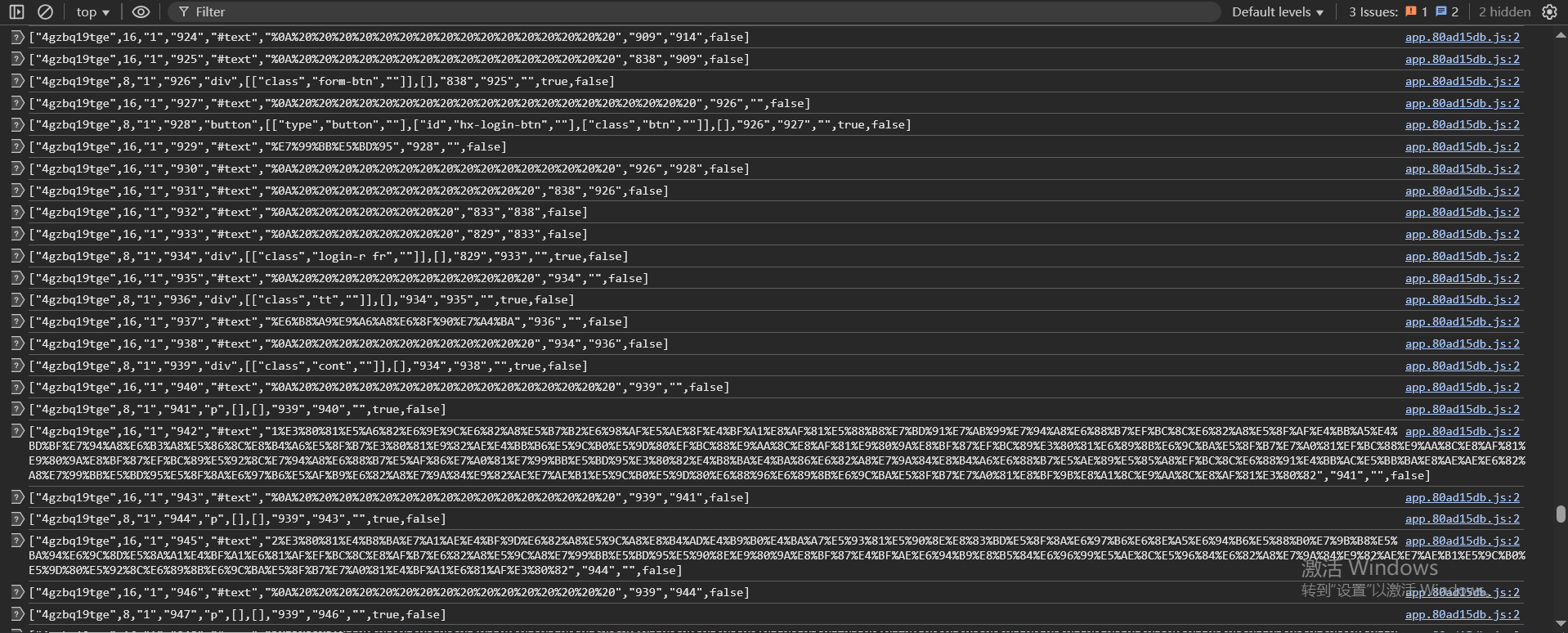 1 | let xxx = JSON.stringify(t.data); if(xxx.indexOf("#text") !== -1) {console.log(decodeURIComponent(t.data[5]));} console.log(xxx); false; |