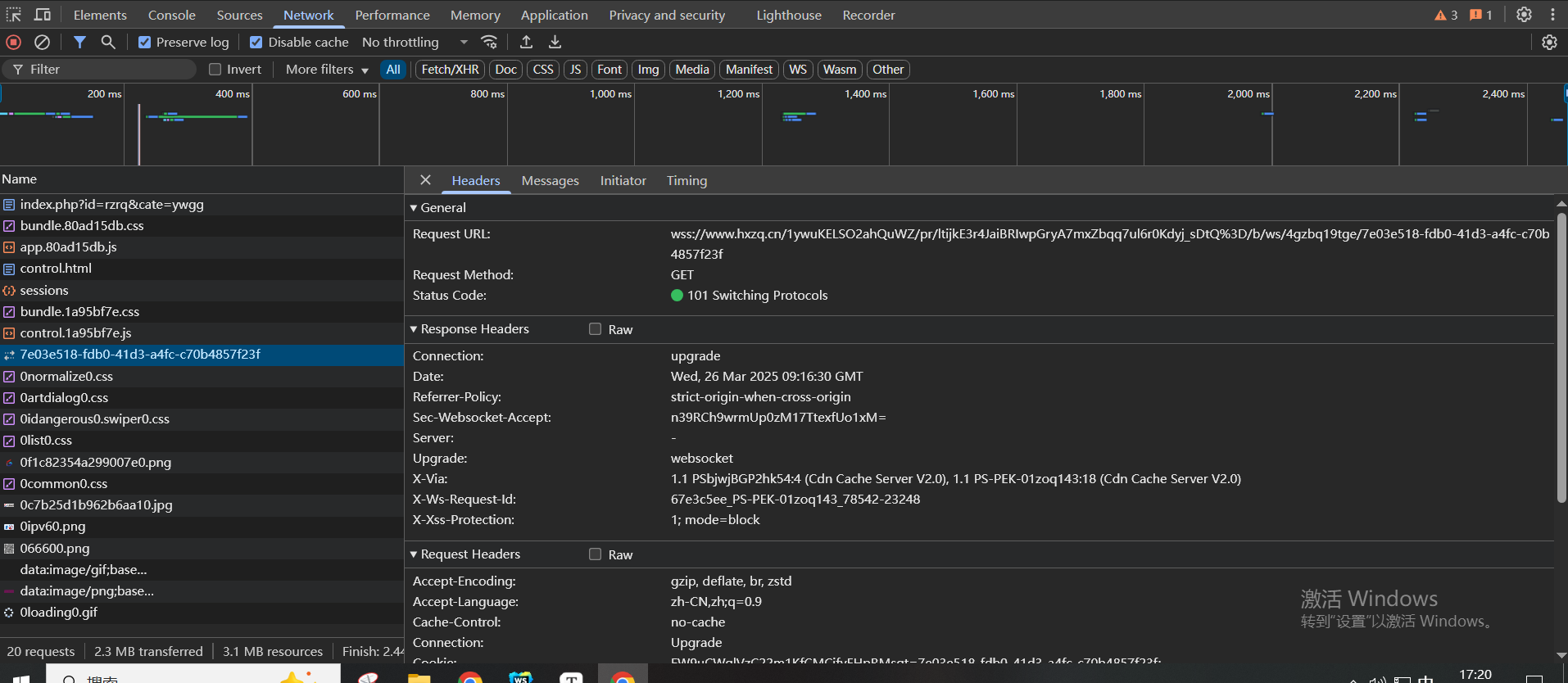 看到有一个websocket请求,请求将通信协议升级成websocket