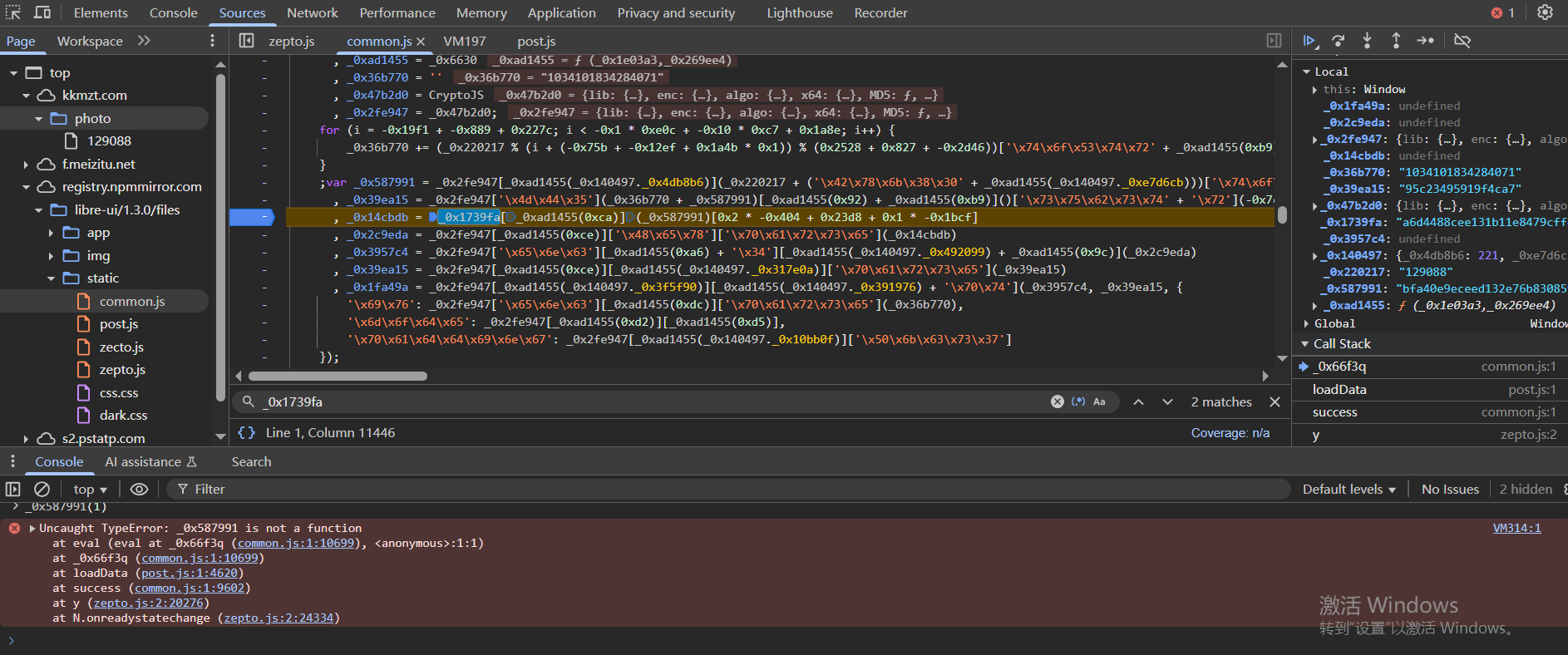 发现_0x1739fa变量只在_0x14cbdb = _0x1739fa[_0xad1455(0xca)](_0x587991)[0x2 * -0x404 + 0x23d8 + 0x1 * -0x1bcf] 处被用到