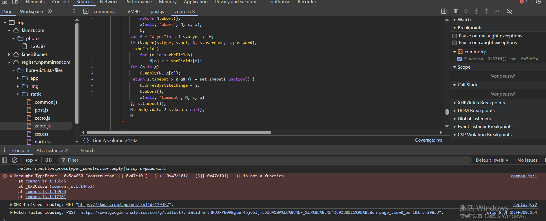 找到发送请求的函数栈,在N.send(s.data ? s.data : null),处打上断点,找一个新的图片去访问,这里不知道为什么直接刷新网页,会断不下来,定位到上层函数
