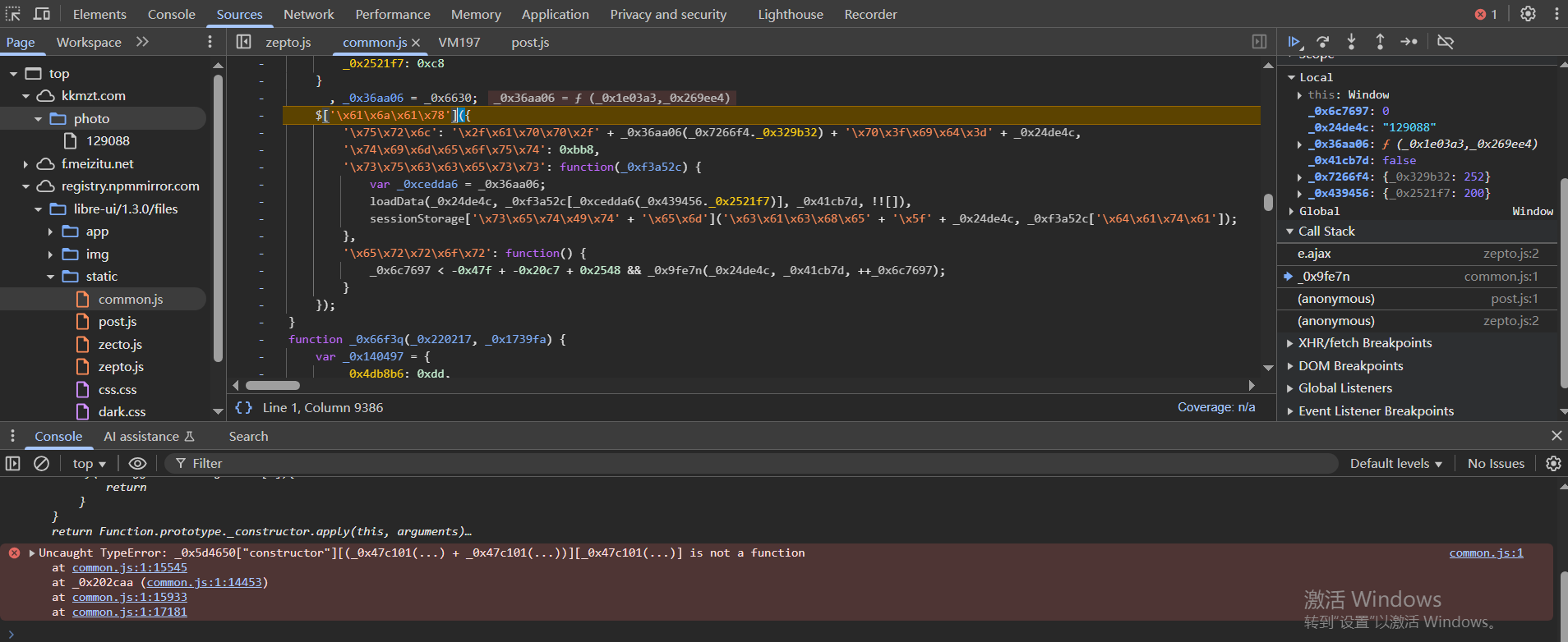 稍微分析一下可以知道,加密方式是AES,mode是CBC,填充方式是PKCS7,而且数据是先进行hex解码(_0x2c9eda = _0x2fe947[_0xad1455(0xce)]['\x48\x65\x78']['\x70\x61\x72\x73\x65'](_0x14cbdb)),再进行base64编码(_0x3957c4 = _0x2fe947['\x65\x6e\x63'][_0xad1455(0xa6) + '\x34'][_0xad1455(_0x140497._0x492099) + _0xad1455(0x9c)](_0x2c9eda))
