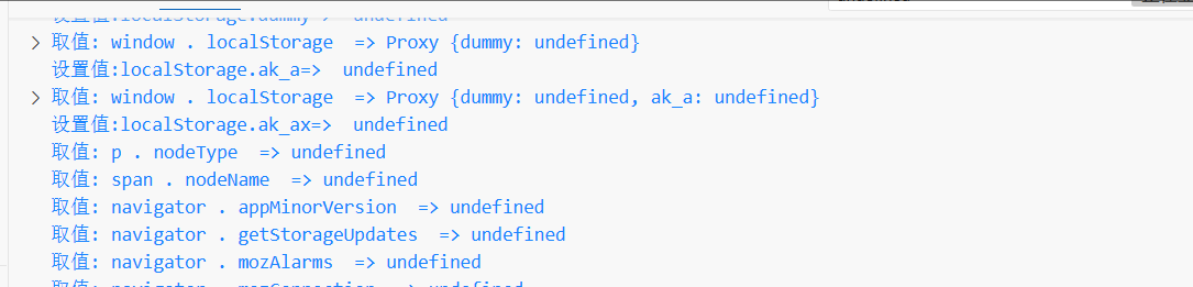 1 2 3 4 5 6 7 8 9 10 11 12 13 14 15 16 createElement :function (ele ){ console_log ('document getElementsByTagName=>' ,ele) if (ele === 'p' ) { let p = watch ({},'p' ) return p } if (ele === 'span' ) { let p = watch ({},'span' ) return p } if (ele === 'div' ) { let p = watch ({},'div' ) return p } debugger }