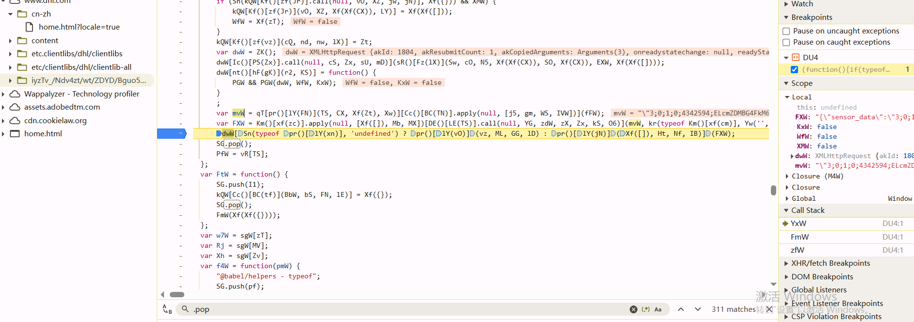 要逆向发起这个请求参数,清除cookie之后再initiator的里面下断点