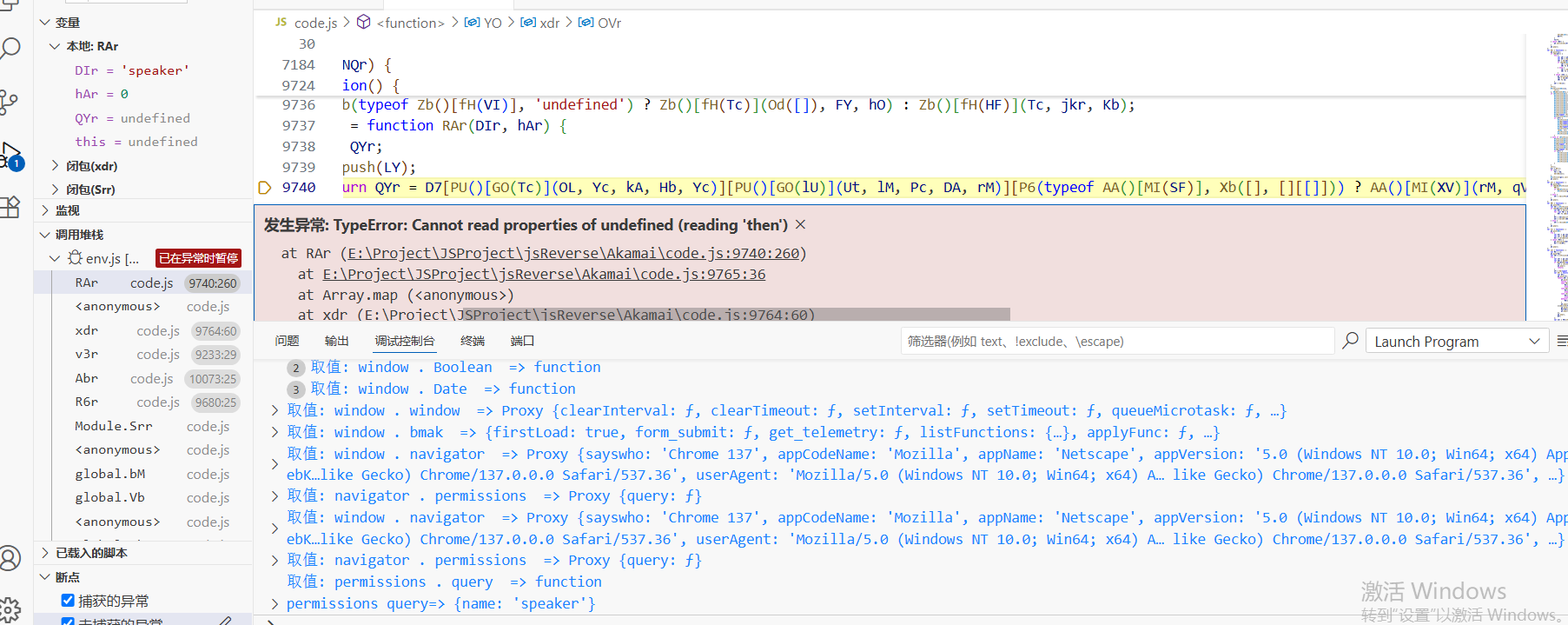 发现.then的这里报了错,是在执行permissions.query的方法报错了,取不到该方法的.then属性