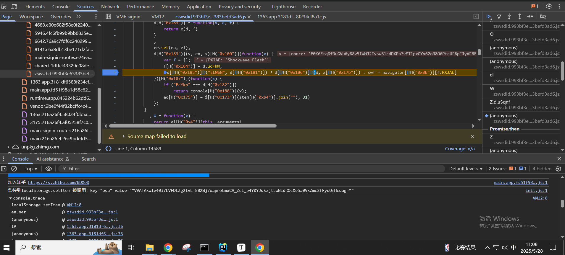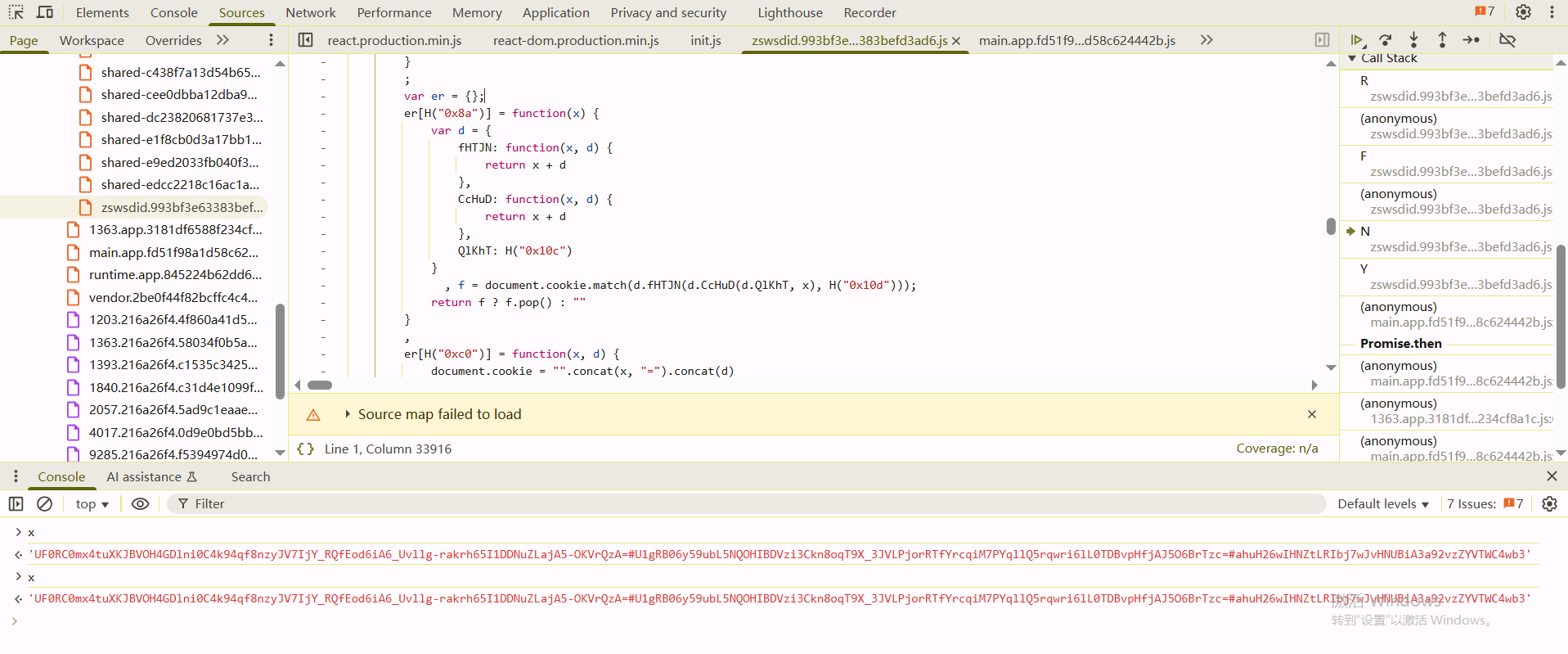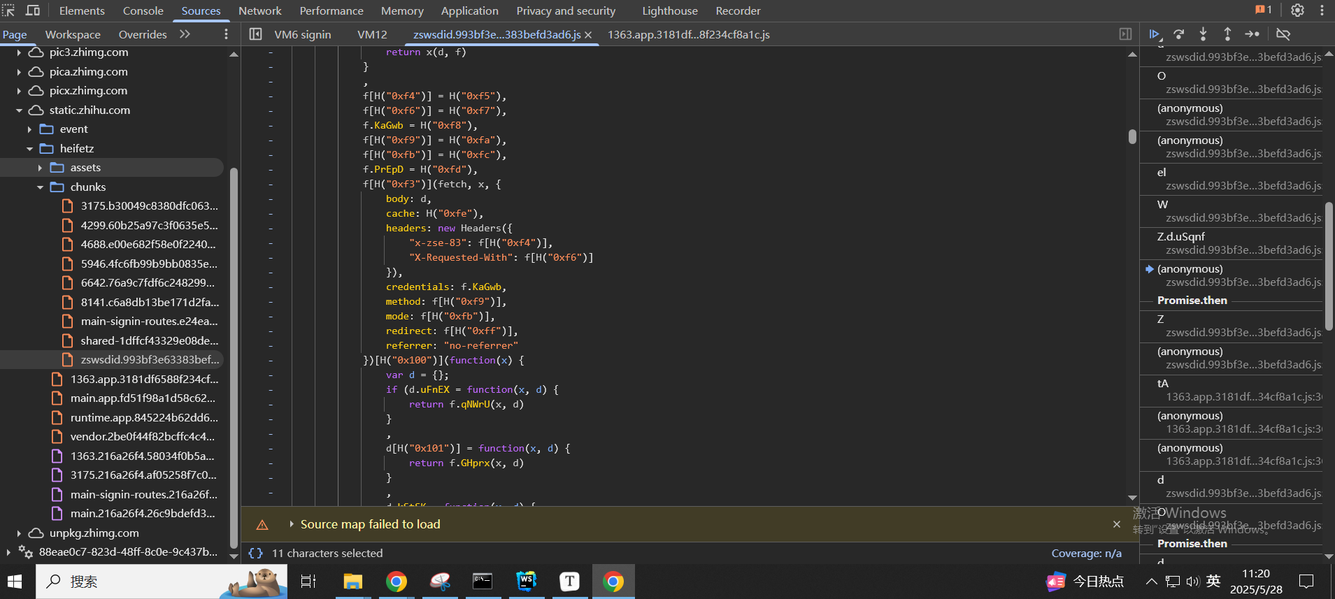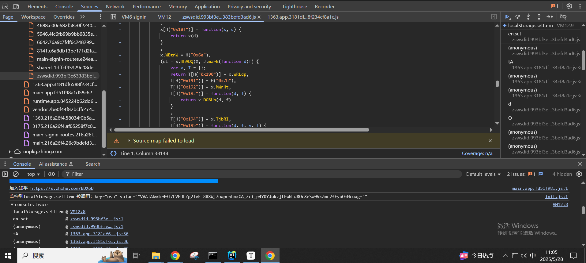 关键代码的定位这里不再赘述,之前说过,这里要注意的是,这里参数生成只能在页面加载的时候断下来,打断点之后如果第二次刷新网页,前一个js断不下来,因为每次页面刷新都会重新打包webpack
