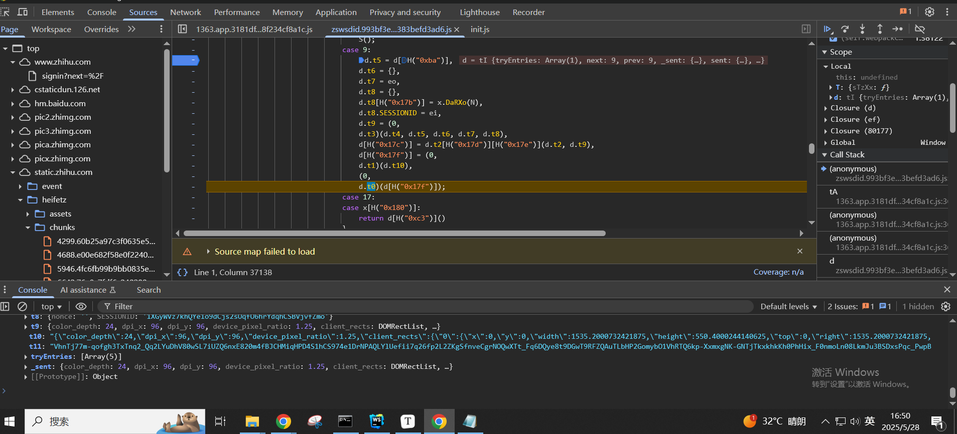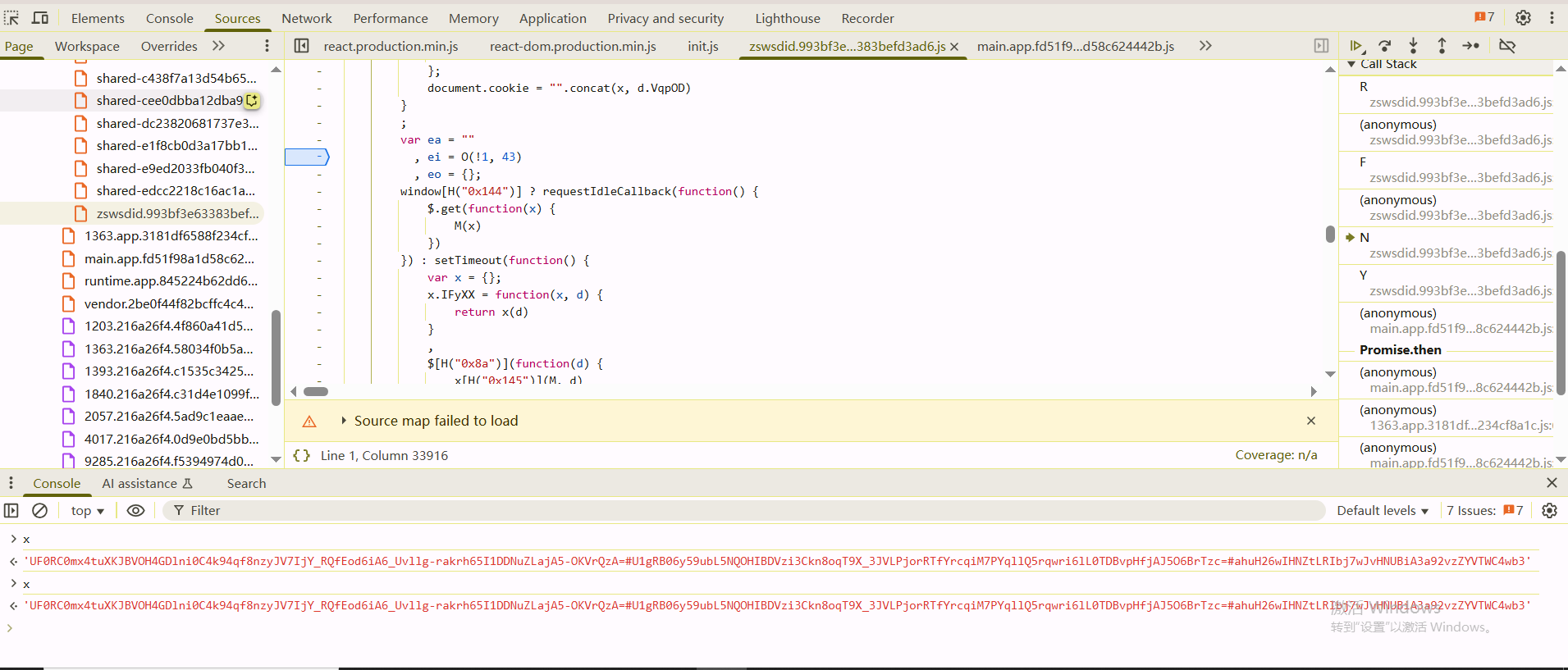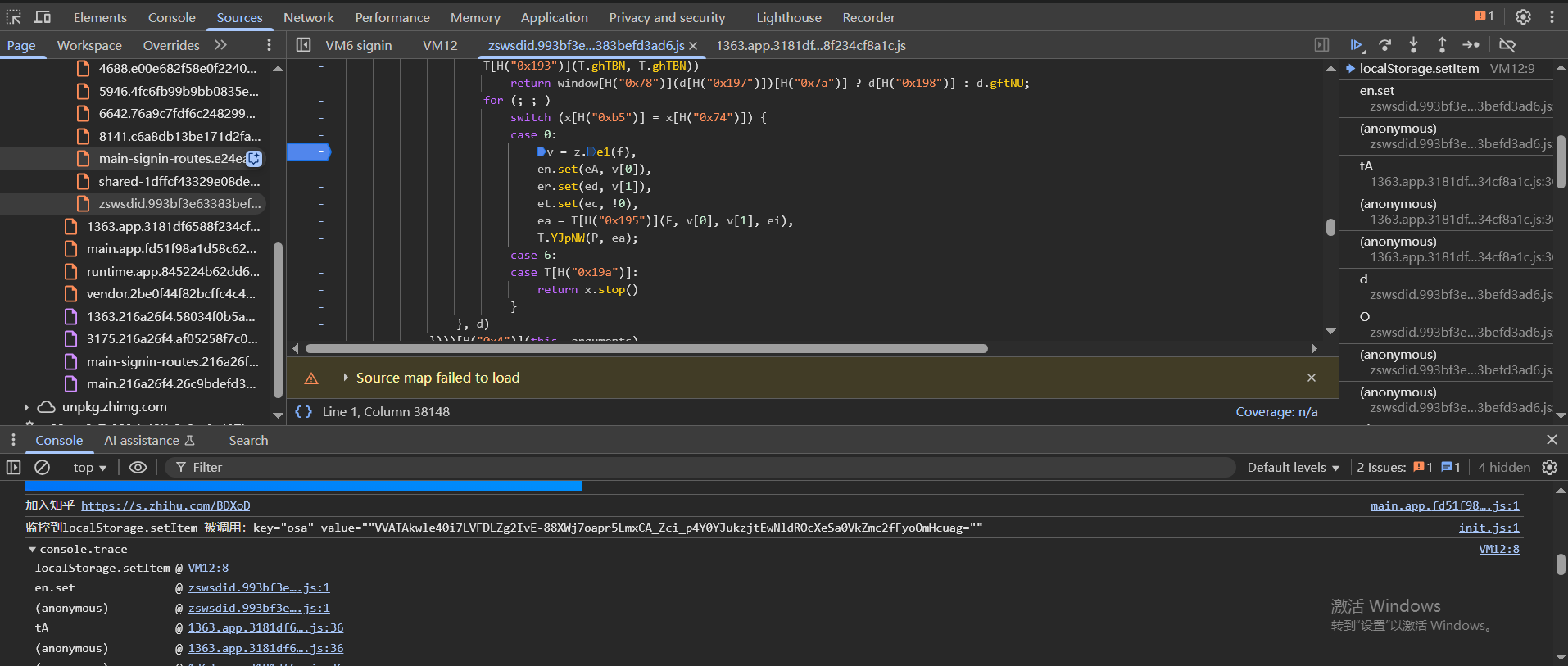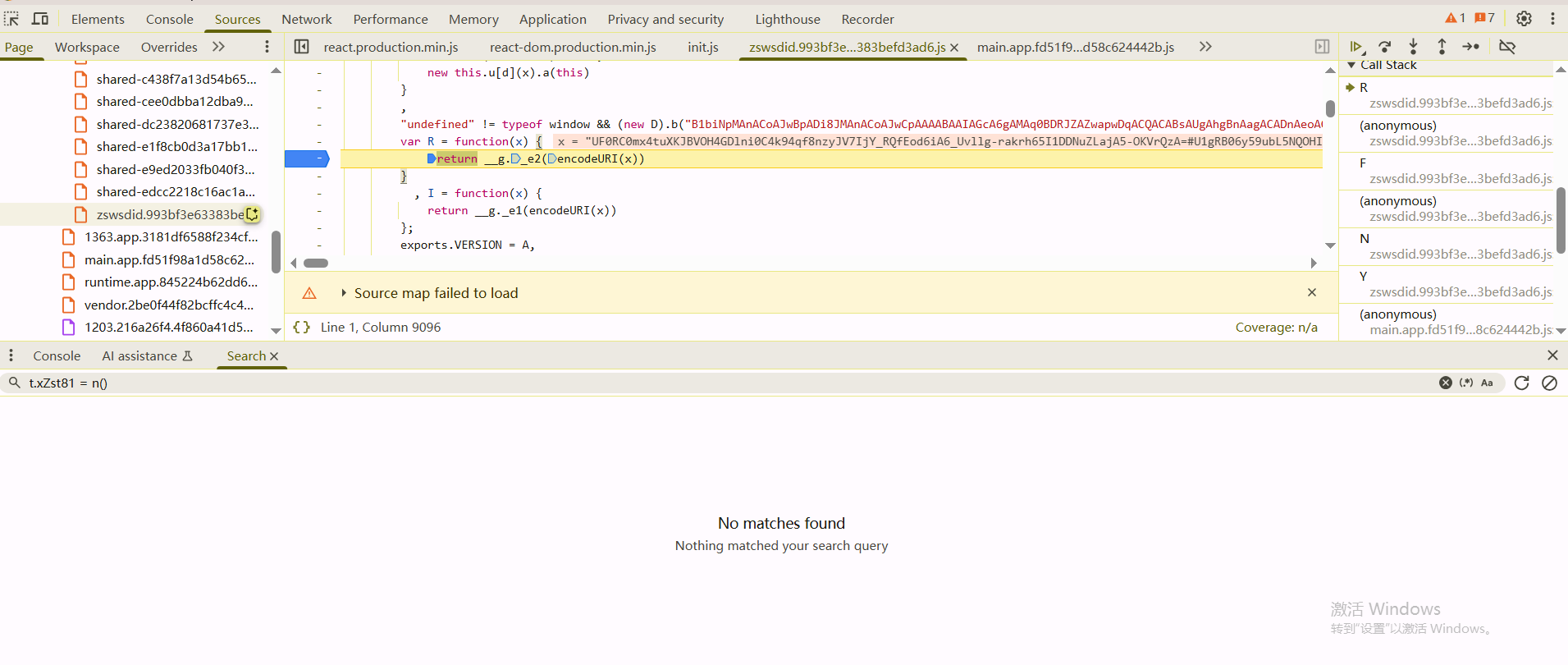 关键代码的定位这里不再赘述,之前说过,这里要注意的是,这里参数生成只能在页面加载的时候断下来,打断点之后如果第二次刷新网页,前一个js断不下来,因为每次页面刷新都会重新打包webpack