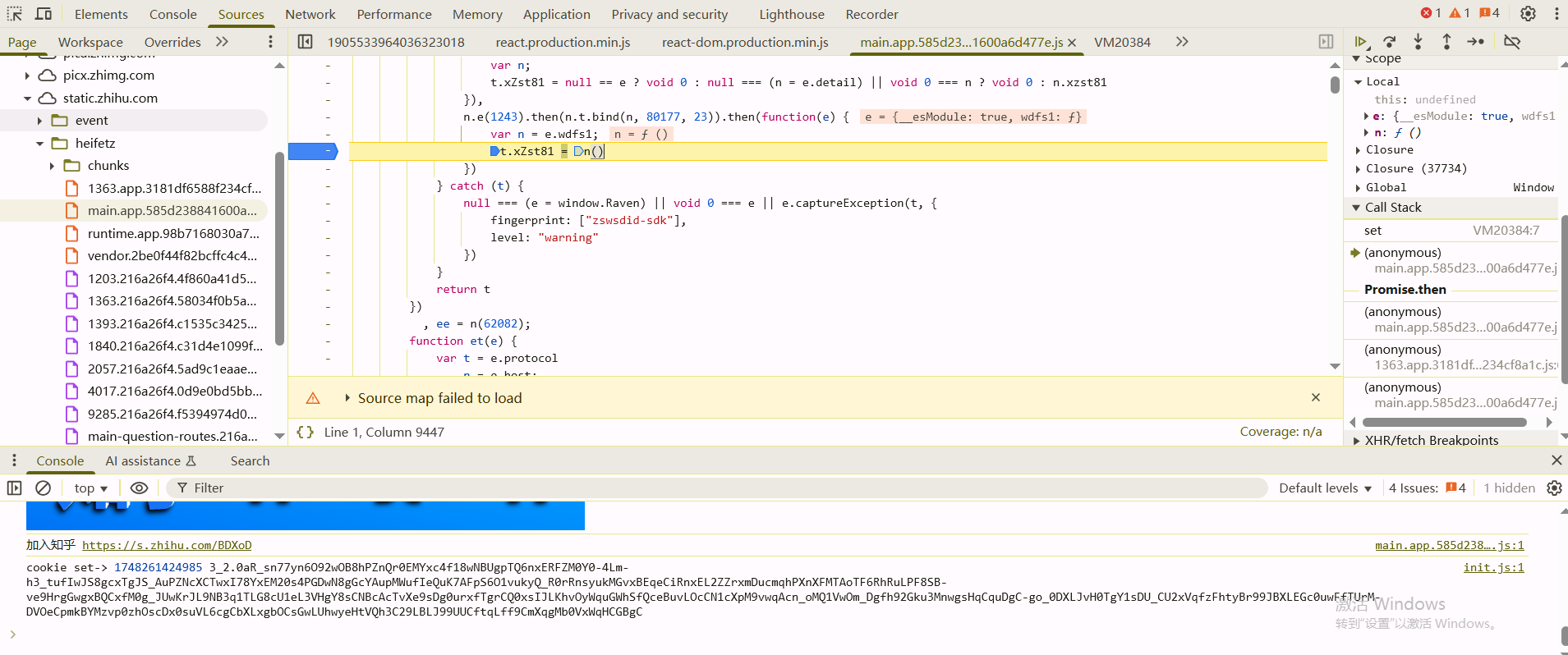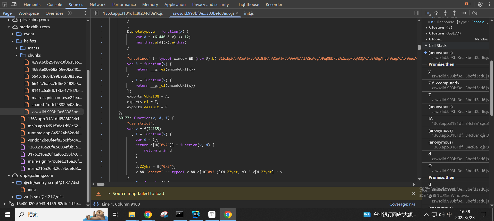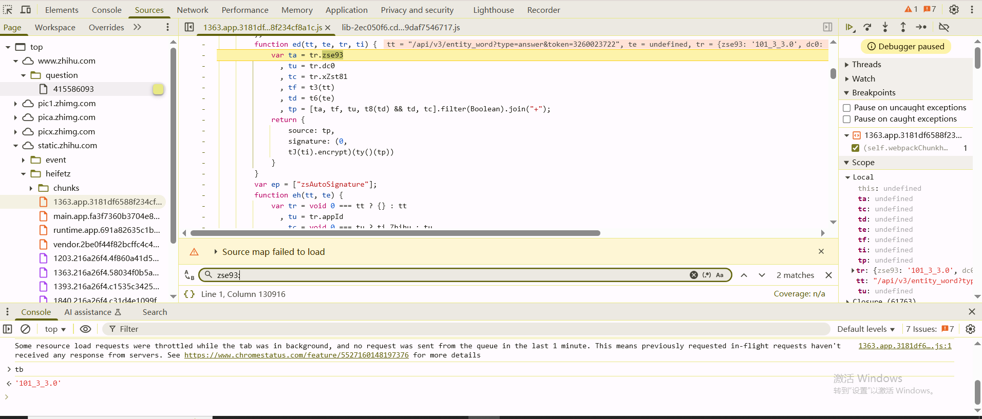 全局搜索"x-zst-81",把断点下在这里,当代码执行到这里的时候,发现在访问'/api/v4/me?include=is_realname'接口的时候,此时tS = td.xZst81 || tp.get("x-zst-81")获取不到值