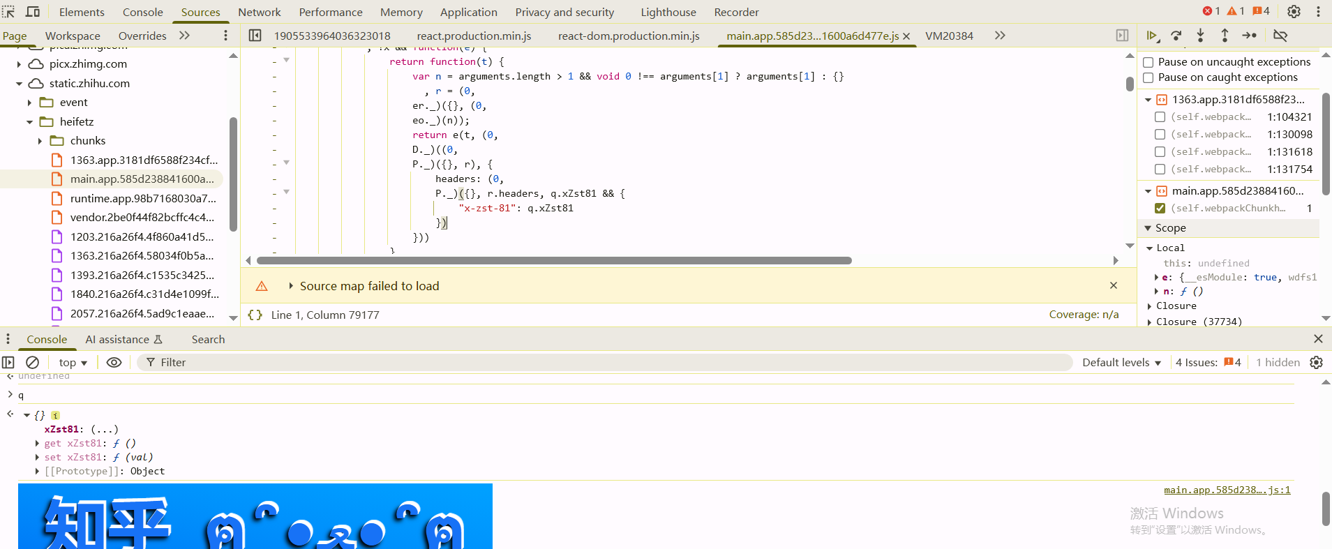 在q = x ? {} : $()处断下来,等待q初始化完成之后,hook q的xZst81属性,当set的时候断下来