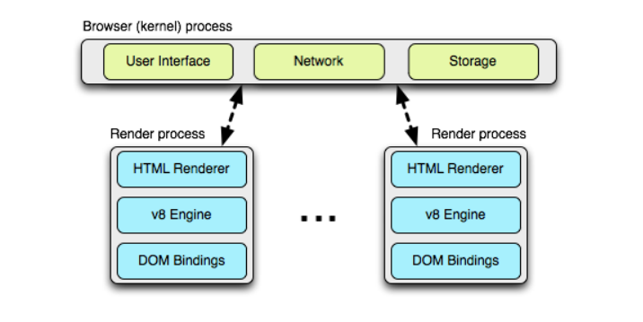 在多进程架构出现之前,浏览器的每个tab都是揉在一起的,这导致如果一个tab中的页面出现了未知错误,如果内部出现一个uncaughtError,整个 浏览器就有可能全退了,用户需要再次打开浏览器。对于浏览器软件架构的设计理念 – 速度,安全,稳定,易用,是极其不符的,因为 如果出现了安全漏洞所有渲染进程都是一条绳上的蚂蚱,很不稳定。